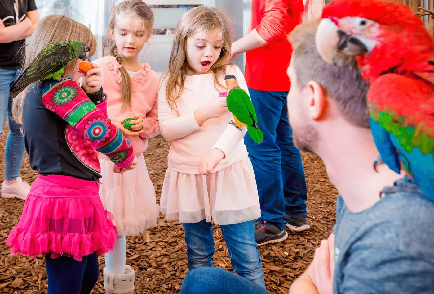 Nie ma dolnego limitu wiekowego dla dzieci odwiedzających papugarnię pod opieką dorosłego. Dzieci, które skończyły 12 lat mogą odwiedzać papugarnię samodzielnie.